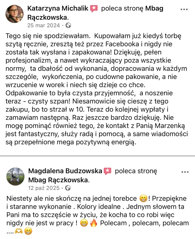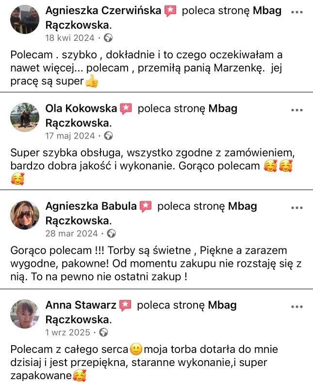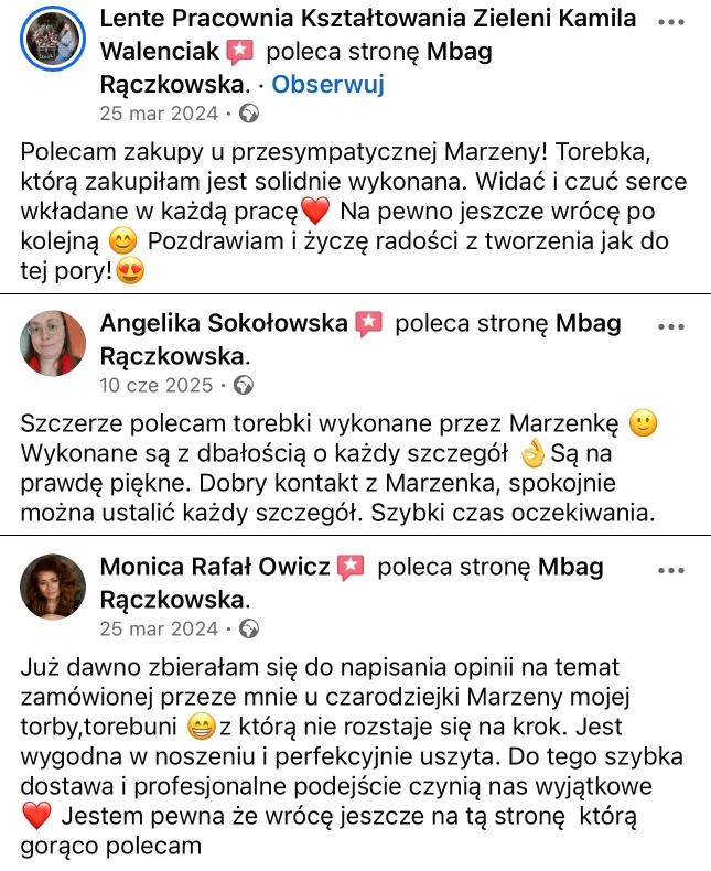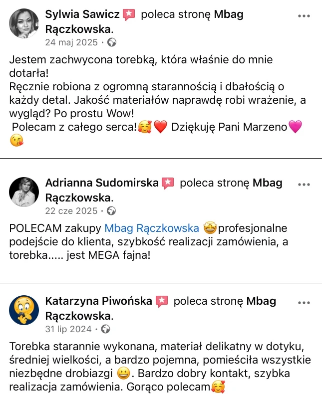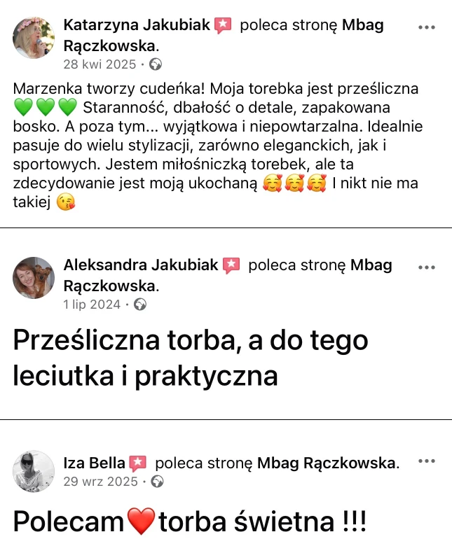 Tworzę torebki z myślą o kobietach, które cenią prostotę, jakość, estetykę i ponadczasowy styl. Każdy model powstaje ręcznie z dbałością o detale i funkcjonalność, która sprawdza się na co dzień.
