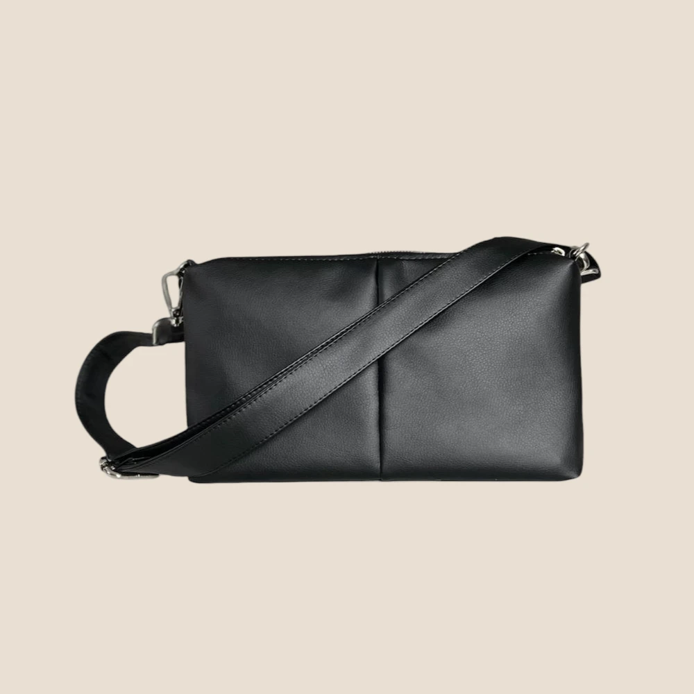 • Regulowany pasek umożliwia noszenie na ramieniu lub crossbody