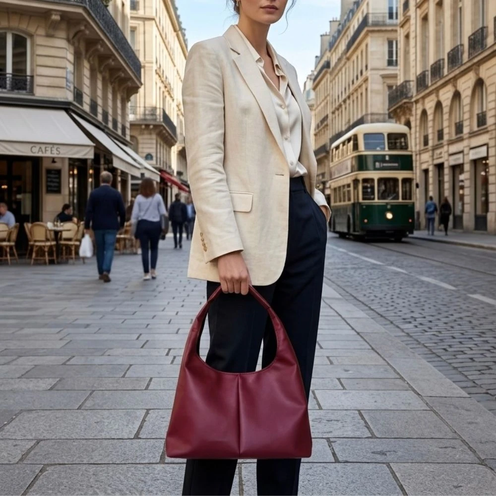 Bordowa torebka Hobo – ręcznie robiona, minimalistyczna i praktyczna