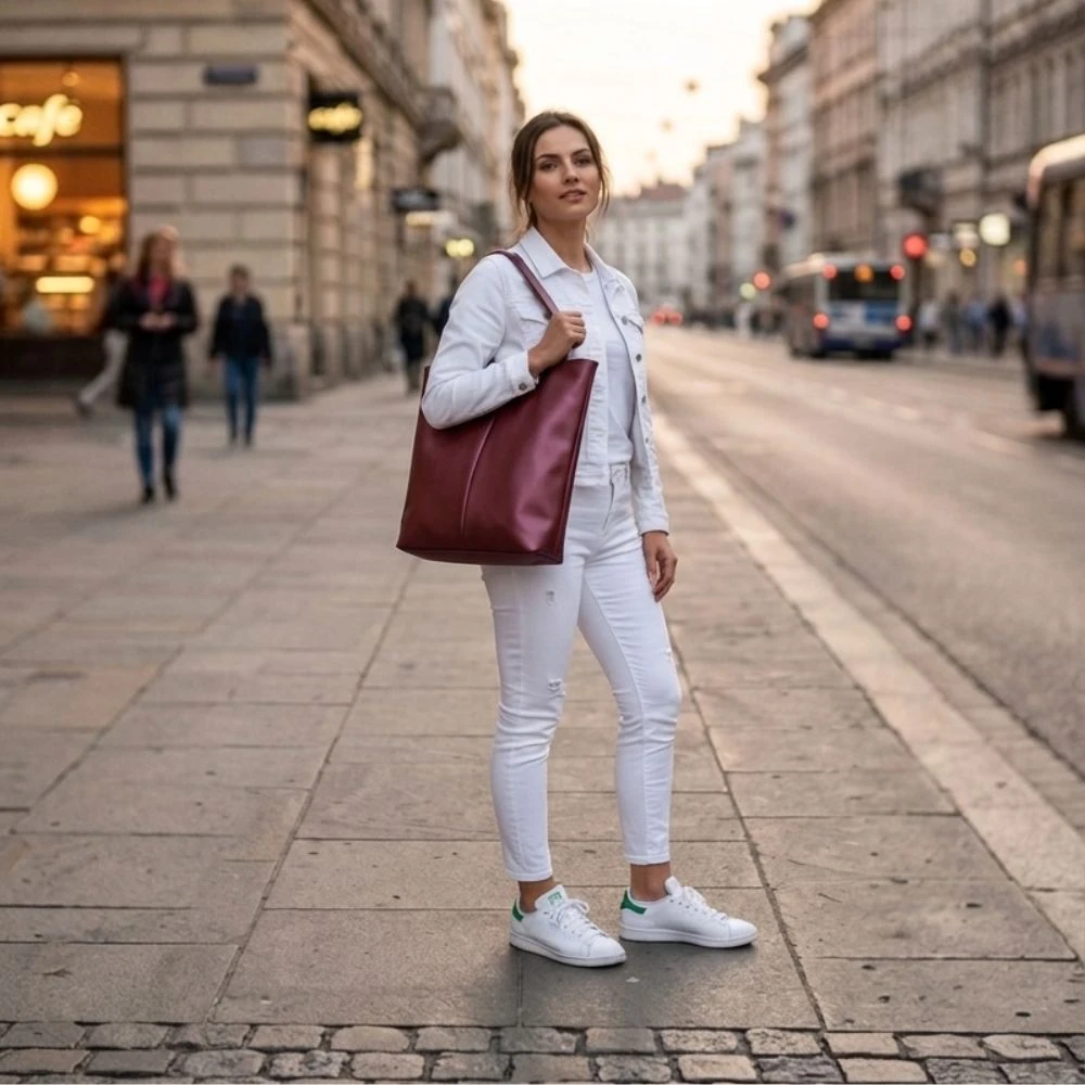 Poznaj torebkę shopper Linea, pojemna i funkcjonalna torba, ręcznie szyta z pasją w polskiej pracowni. Jej elegancki design z subtelnym przeszyciem na środku łączy ponadczasowy styl z codzienną wygodą. Shopperka Linea to torba o minimalistycznej, eleganckiej formie, która sprawdzi się w miejskim rytmie życia. Jej lekka konstrukcja i starannie dopracowane detale nadają charakteru każdej stylizacji, pasują zarówno do pracy, na uczelnię, jak i na codzienne wypady do miasta.